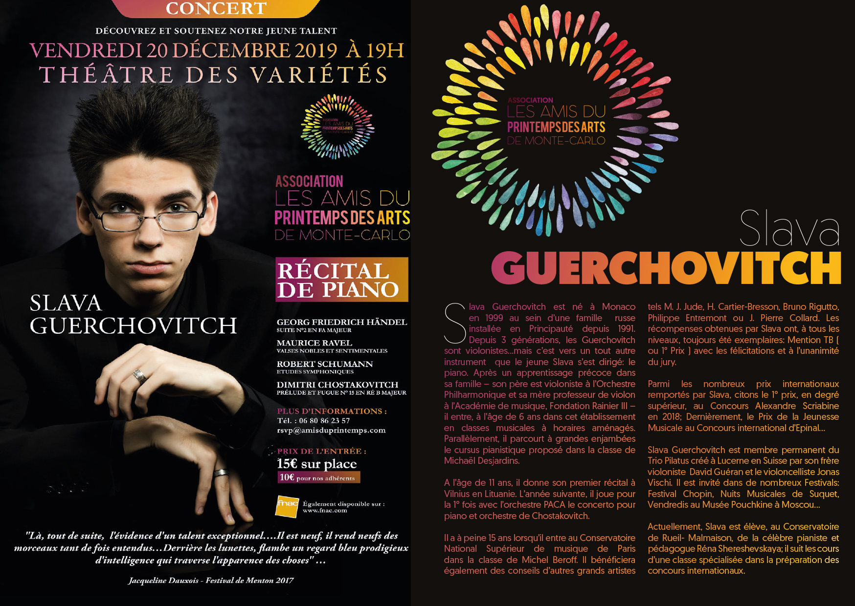L’Association des Amis du Printemps des Arts est heureuse de vous proposer un récital de piano d’un jeune talent :
